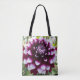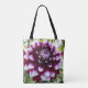 Ihre Auswahl an stilvollen Totentaschen oder Crossbody-Taschen mit einem Überdruck, der das Foto einer prächtigen, dunkelrosa und weiß dekorativen Dahlia-Blume zeigt. Ein schönes, blumengeschmücktes Design! Wählen Sie die Größe und den Stil Ihrer Tasche aus.