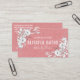 Rosa florale Visitenkarten für Ihr Seife- und Kerzengeschäft! Das Design ist mit weißen Rosen auf einem rosa Kartenhintergrund mit weißem Text gestaltet. Fügen Sie Ihren Firmennamen, Ihr Werbeangebot und Ihre Social-Media-Seiten hinzu und markieren Sie sie auf der Rückseite, um den Ball für Ihr Unternehmen zu sichern.
