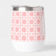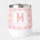 Dieses elegante monogramm Weintumbler-Design zeichnet sich durch ein modernes, rosa und weiß geflochtenes Rattan-Rohrmuster auf der Vorder- und Rückseite aus. Die Vorderseite hat einen rosafarbenen Rahmen mit einem weißen Initial.