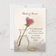 Verkünden Sie Ihre Ehe und Empfang mit der hübschen rosa Rose und weißen Perlen Hochzeit Speichern Sie das Datum Ankündigungen. Diese elegante Blütenhochzeit behielt die Datumsanzeige mit einem Blumenfoto von einer Blume aus einer Single Rose in einer Glasvase mit weißer Perlenhalskette und Brautschleier.