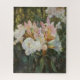 Nichts ist schöner als ein rhododrendron Busch in voller Blüte. Dieser schöne Ausdruck eines originalen Ölgemäldes hebt zartes Rosa und Weiß mit tiefgrünem Blattwerk hervor. Dieses köstliche und herausfordernde Puzzle wird Ihnen stundenlang Spaß machen. Original-Kunstwerk, Copyright Leah Wiedemer.