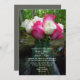 Eine Hochzeitseinladung mit einem Foto eines Maurerkirsches aus rosa und weißen Rosen, das auf dem kleinen Wasserfall einer Bucht sitzt. Personalisieren Sie den Text.