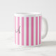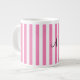 Rosa und weiße Streifen des Monogramms Jumbo-Tasse