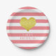 Rosa und weiße Streifen Goldenes Herz zum Geburtst Pappteller