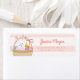 Rosa und weiße Streifen Osterhase in einem Basket & farbenfrohe Eier Happy Osteretikett. Passen Sie auf Ihre Wünsche an.