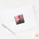 Rosa und weiße Wasserfarben-Blütenhochzeit Quadratischer Aufkleber