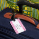 Dieser schöne Gepäckumbau kennzeichnet einen Zickzack Streifenentwurf von rosa und Weiß auf Front und Rückseite mit Bereichen, die Sie mit Ihrer Zahl des Namens und der Initiale sowie des Telefons besonders anfertigen können des letzten Namens oder volle Adresse.