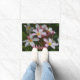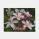 Rosa und weißes Plumera mit Willkommen Fußmatte