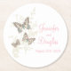 Schmetterlinge und Blütenwirbel in Rosa, Creme, Aqua aquamarin und braun, Untersetzer zum Gedenken an Hochzeitspapiere. Eine großartige persönliche Ergänzung zu Ihren Hochzeitstischen oder nach einer Hochzeit. Personalisieren Sie Ihre Brautnamen und Vornamen. Ideal für Schmetterlingstheater oder Gartenhochzeiten. Einzigartig in Aquarell und Design von Sarah Trett gemalt.
