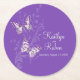 Schöne Grafik zwei Kunstschmetterlinge und Blumenwirbel in lila, cremefarbenen und grau Gedenkpapier Untersetzer. Eine großartige persönliche Ergänzung zu Ihren Hochzeitstischen oder nach einer Hochzeit. Personalisieren Sie Ihre Brautnamen und Vornamen. Ideal für Schmetterlingstheater oder Gartenhochzeiten. Einzigartig in Aquarell und Design von Sarah Trett gemalt.