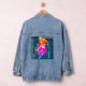 Die Präsentation des rosa urbanen Ausdrucks Denim Jacket, das Must-Have-Stück, das den Geist von Street Style und künstlerischen Flair widerspiegelt. Mit einem auffälligen abstrakten Grafikdesign verkörpert diese Jacke den "pinkfarbigen Ton" der Hip-Hop-Kultur und verbindet abstrakte Typografie und energetische Formen zu einem atemberaubenden Modestatement.