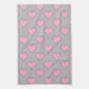 Küchenhandtuch mit rosa Valentinherzen auf grauem Hintergrund.