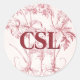 Rosa Vintage Botanische Art Monogram Runder Aufkleber