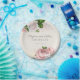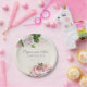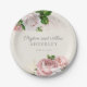 Elegante und stilvolle Vintage botanische rot-rosa Aquarellblüte (Rose) und gestrichene grüne Aquarellfarben Blätter auf cremefarbenen Rezeptionstresen. Angepasst mit den Namen der Braut und Bräutigam und ihrem Hochzeitstag.