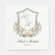 Die wunderschönen Servietten in Aquarellfarben mit einem Wappen mit mehrfarbigen rosa-weißen Blume und weiße natürliche Grünpflanzen, die Initialen von Braut und Bräutigam und ihr Hochzeitstermin wären perfekt für Ihren Hochzeitsempfang. Sie sind traditionell und klassisch, aber frisch, modern und zeitgemäß. Sie werden wunderschön auf den Tischen sein.