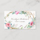 Boho schicke Visitenkarte mit Aquarell rosa Blume, Blattwerk und Zweigen Kranz. Diese florale Visitenkarte ist perfekt für Floristen, Veranstaltungsplaner und Designer.