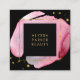 Diese gläserne, dramatische Visitenkarte ist mit einem rosa Aquarell auf schwarzem Hintergrund, mit goldfarbenen Akzenten in den Imitaten, ausgestattet. Perfekt für alle modernen Glam-Unternehmen wie Make-up, Schönheit, Haare und Mode. Auf der Rückseite befinden sich auch Social Media Icons (Sie können ganz einfach jedes Icon löschen, das Sie nicht benötigen).