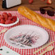 Rosa Wasserfarbenkirche Hochzeit Pappteller