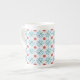 Eine schicke Knochen-China-Tasse, mit einem Muster aus rosa Wasserlilien und blauen Libellen, aus einer handbemalten Papiercollage von Judy Adamson. Ein wunderschönes Geschenk für jemanden mit einem Geburtstag im Juli; Teil der Posh & Painterly 'Lily Pond' Kollektion.