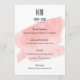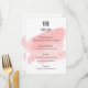 Ein modernes Hochzeitsmenü mit rosafarbenem Aquarell-Hintergrund.