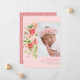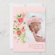 Elegante niedliche Geburtsmeldekarte mit \Illustrationen von roter Wassermelone und Granatfrüchten mit blühenden Rosen, rosa Rosen, Lavendel und grünem Blattwerk vorne. Die Rückseite zeigt einen korallenrosa Polka Punkt Hintergrund. Es gibt 3 Bilder von Ihrem Neugeborenen, die auf dieser Karte (vorne und hinten) hinzugefügt werden können. Perfekte Karte, um die Ankunft Ihres neuen Babys mit seinen Geburtsdaten anzukündigen. Ideal für Junge und Mädchen. Ideal für Sommer- und Frühjahrszeiten!