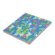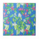 Eine hübsche Keramikfliese, mit einem Muster der cremefarbenen Scheinorangen-Blüte und des hellen rosa Weigela auf einem Himmelblauhintergrund, von einem handgemalten Wasserfarbeentwurf durch Judy Adamson. Gebrauch als Wandfliese oder als trivet.