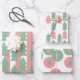 Rosa Weihnachtsbaumstreifen und -stecke Geschenkpapier Set