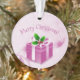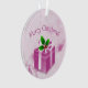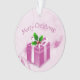 Fügen Sie Ihrem Weihnachtsbaum eine skurrile Touch mit einem rosa Weihnachtsgeschenk-Ornament hinzu. Das Ornament-Design besticht durch ein lebhaftes, rosa Weihnachtsgeschenk, das mit heiligen Beeren und abfallenden Schneeflocken geschmückt ist und einen eleganten Scroll- und Blätter-Hintergrund bietet. Mit diesem Design sind auch zusätzliche Geschenk- und Urlaubsartikel erhältlich.