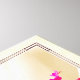 Das ist Blumenfotografie einer rosa Weihnachtskaktus-Blume in voller Blüte. Die Ferienflora befindet sich in einem Messingtopf vor einem weißen Vorhang im Hintergrund. Das Foto wird von einer cremefarbenen Matte mit grauem Schnitt umrahmt. Eine lustige Idee für Zuhause Dekorationen in dieser Ferienzeit.