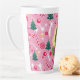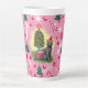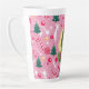 Schönes, spielerisches, fröhliches, rosa Weihnachtsdesign mit einer Illustration einer schwarzen Katze mit Weihnachtsbaum und einem Muster, das herumschwebt.