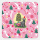 Rosa Weihnachtskatze Quadratischer Aufkleber