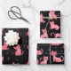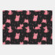 Rosa Weihnachtskatzen auf schwarz Geschenkpapier Set