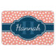 Stilvolles, trendiges hellrosa und weißes Punktmuster im Hintergrund, mit einem dunkelblauen Etikett mit individualisierbarem Namen und Monogramm-Vorlage.