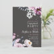 Rosa, Weiß und Blau | Slate Engagement Party Einladung - Suchen Sie eine hübsche Begleiter-Party-Einladung? Karo aus dieser dunkelgrauen Einladung, die rosa, weiße und blaue Blumen auf der Oberseite und am Ende der Verlobung Einladung hat. Diese hübschen Blume prägen das Wort und schaffen ein wunderschönes Frühjahr- oder Sommerthema auf Ihrem Hochzeitsgeschenk. Personalisieren Sie Ihre Einladung zu einer Verlobungsfeier mit all Ihren Angaben, einschließlich der Namen der Ehepaare, dem Datum des Party, dem Ort und Informationen zum UAWG und wer wirft das Party!