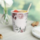 Schöner botanischer Papierbecher mit romantischen Rosa-, Weiß- und Zimt-Rose/ Chianti-Blume mit grünen Blätter. Für weitere Informationen klicken Sie bitte auf die obige Sammlung oder kontaktieren Sie mich.