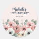 Elegante Rosa und Weiß Aquarell Blumen und Grün 100. Geburtstag Party Aufkleber personalisiert mit dem Namen und Alter der Gast der Ehre. Kontaktieren Sie mich, um Hilfe bei Ihren Anpassungen zu erhalten oder um zusätzliche Matching oder Koordination von Zazzle Produkten für Ihre Feier zu beantragen.