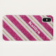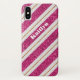 Dieses stilvolle rosa, weiß und gold SIMULATED Glitzer diagonal gestreifte Muster Case-Mate Barely Es iPhone X Case hat eine benutzerdefinierbare Namensvorlage, mit der Sie personalisieren können, wenn Sie möchten, oder Sie können den Namen löschen, wenn Sie es vorziehen.