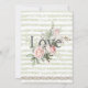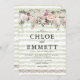 Rustikales Rosa und Weiß Blumendesign überlagert die sanftsten schlängelgrünen Streifen. Durch das Dangling der botanischen Elemente und die Blumengrenze am unteren Rand wird hier ein luftiges Boho-Ambiente geschaffen. Chic, modern und trendig, aber mit einem Hauch von Tradition verziert. Die Rückseite der Hochzeitseinladung weist das gleiche Streifen Muster und den unteren Blumenrand auf. Eine große Blumenordnung umgibt das Wort Liebe. Diese rustikale Boho Einladung ist Teil der Summer Romance Kollektion. Sie sollten einen Link dazu auf dieser Seite sehen. Wenn Sie den Link nicht sehen oder Hilfe bei einem Artikel benötigen, kontaktieren Sie mich bitte.