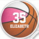 Dieser Basketballaufkleber zeigt das realistische Bild eines stilisierten Basketballs mit zwei farbigen Paneelen - ein rosa und ein weißes - personalisieren Sie mit dem Namen des Athleten und der Trikotnummer - von katz_d_zynes