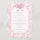 Rosa Weiße Rose Chinoiserie Brautparty Menükarte