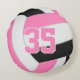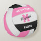 Dieses niedliche Volleyball Rundkissen zeigt ein realistisch aussehendes rosa, schwarz-weißes Volleyball, auf dem man den Spielernamen, den Monogramm- oder Varianzbuchstaben, den Mannschafts- und Maskottnamen auf der Vorderseite und die Trikotnummer auf der Rückseite - von katz_d_zynes