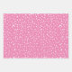 Rosa und weiße Weihnachtstypografie und Dots Urlaub Wrapping Paper Sheets. Das erste Blatt enthält den Text "Frohe Weihnachten" in weiß auf rosa, das zweite weiße Polka Punkte auf rosa und das dritte den Text "Frohe Weihnachten" in rosa auf weiß.