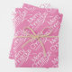 Rosa, weiße Weihnachtstypografie und Weihnachtsfer Geschenkpapier Set