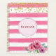 Rosa, weißes Plannerblatt | Täglicher Blumenplaner mit gestrichenen rosa Streifen und Muster für Glitzer | Ein elegantes und elegantes Geschenk für Salons, Hochzeiten, Journalismus, Make-up Artists, Friseur, Girl Boss, Weibliche Unternehmer, Boss Babes | Sie können den Text auf der Vorderseite personalisieren.