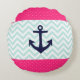 Trendy Seeentwurf des Polkapunktes des heißen Rosas und tadelloser blauer Zickzack Hintergrund mit Marineblauanker in der Mitte.