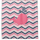 Ein niedlicher, rosafarbener Wal mit einer Marineinfassade und weißem Wasser, der sich auf einem Zickzack Hintergrund aus Rosa, Weiß und Marineblau ausbreitet.