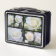 白い薔薇の美しいシーンをコラージュしてプリントした素敵なランチボックスです。《テキストは自由に編集してください。》