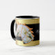 ブラックとゴールド調のカラーを対比させた鮮やかなコンボマグです。白い薔薇の美しいシーンをコラージュしてプリントしました。薔薇の花と一緒にくつろぎのコーヒータイムをお過ごしください。 《テキストは自由に加工してください。》【Model Rose】Rosa White Arrow (Class: Floribunda) Japan.2004(reg.)