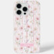 Rosa Wildblumen gestreifte Monogrammierung Case-Mate iPhone Hülle