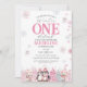 Rosa Aquarelleinladung für den Winter ONEderland Kinderfest zum ersten Geburtstag!